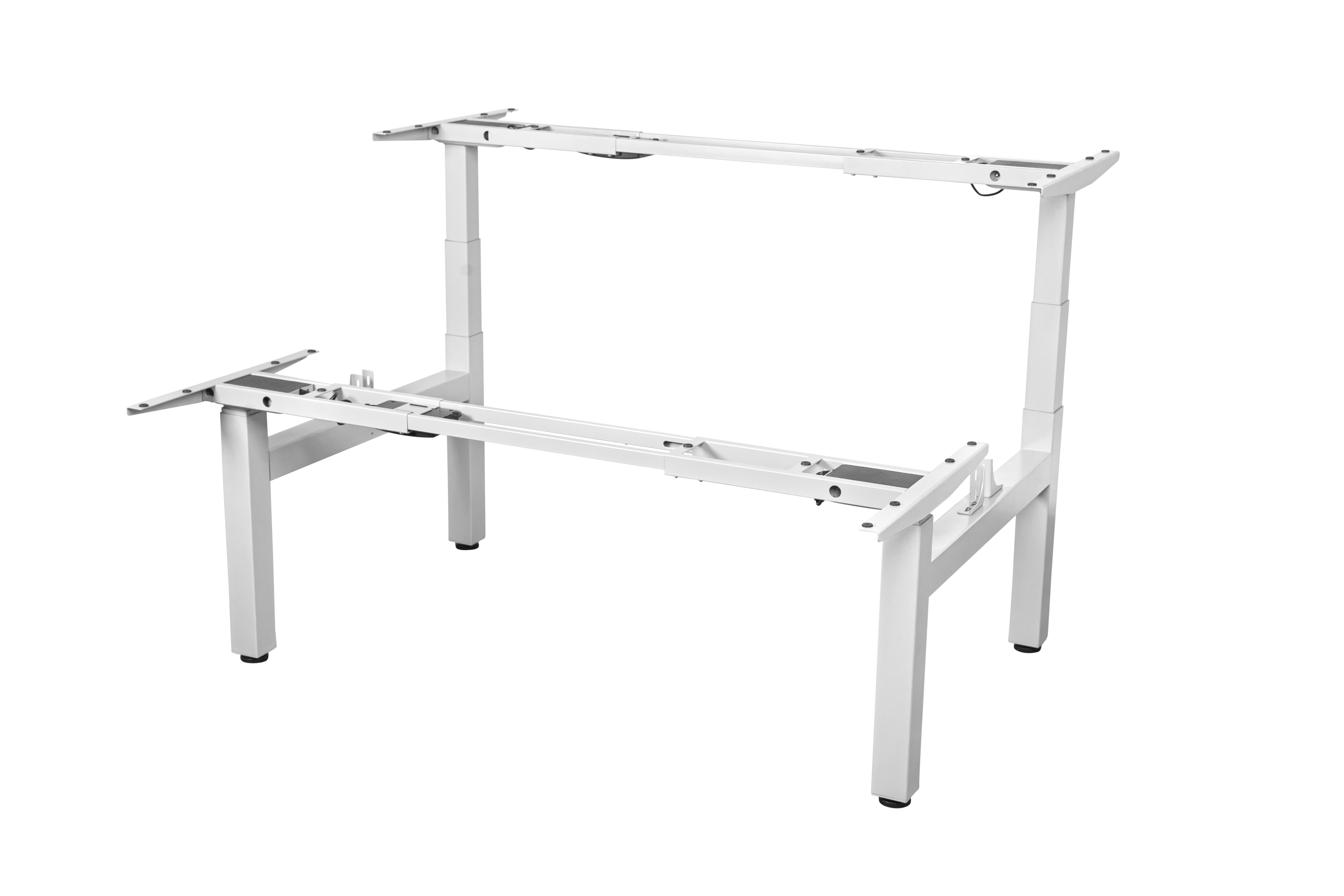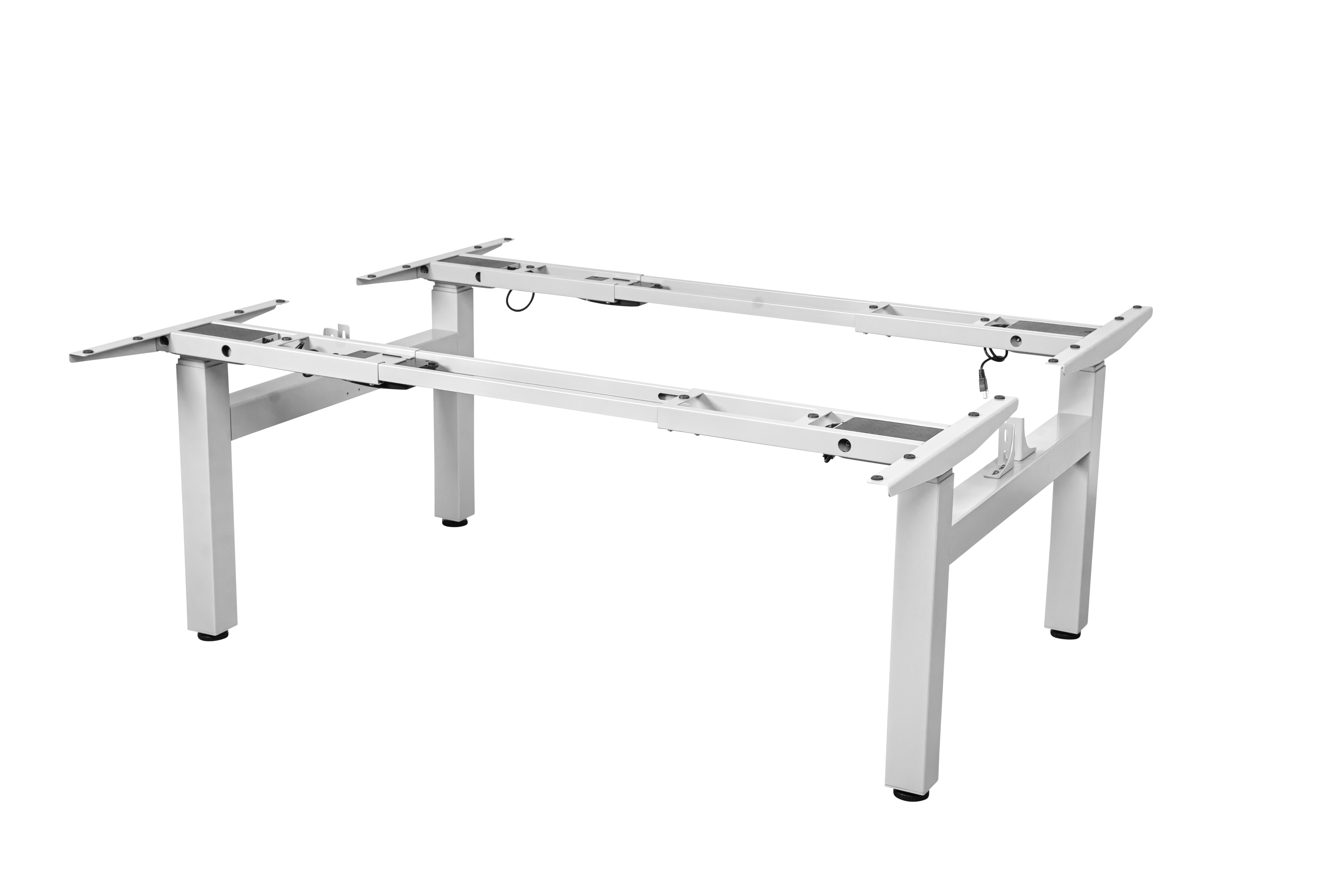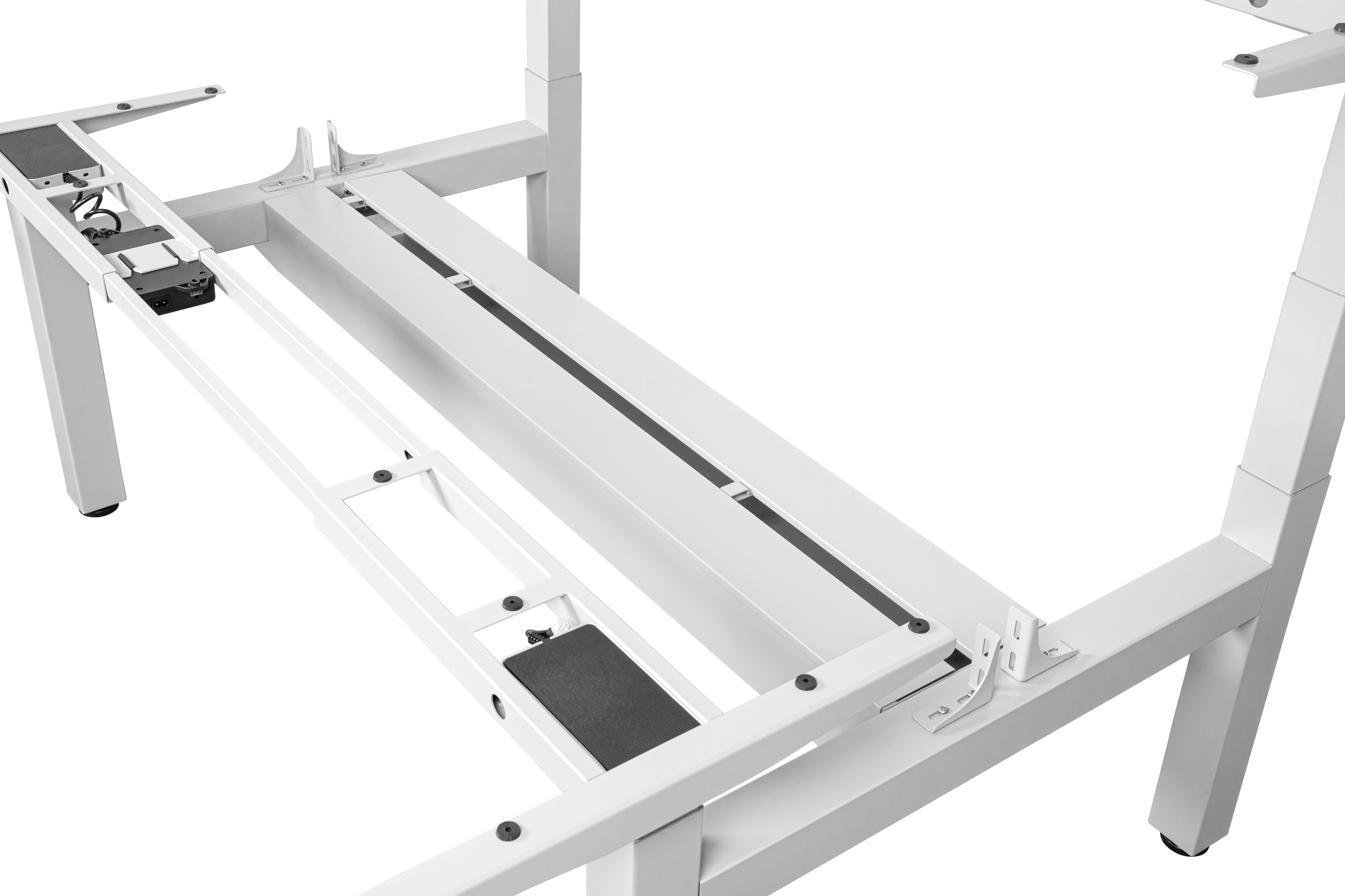 With the Ergofy DUO sit-stand frame you have 2 workplaces next to each other. The frame has a 2-motor desk base with 3 columns and a height adjustment between 630 and 1280 mm. This allows everyone with a height between 150 and 200 cm to work at their optimal working height, both standing and sitting. The frame has a whisper-quiet adjustment due to the 2 powerful motors. The 3-step leg system makes the desk very stable, even at the maximum height.