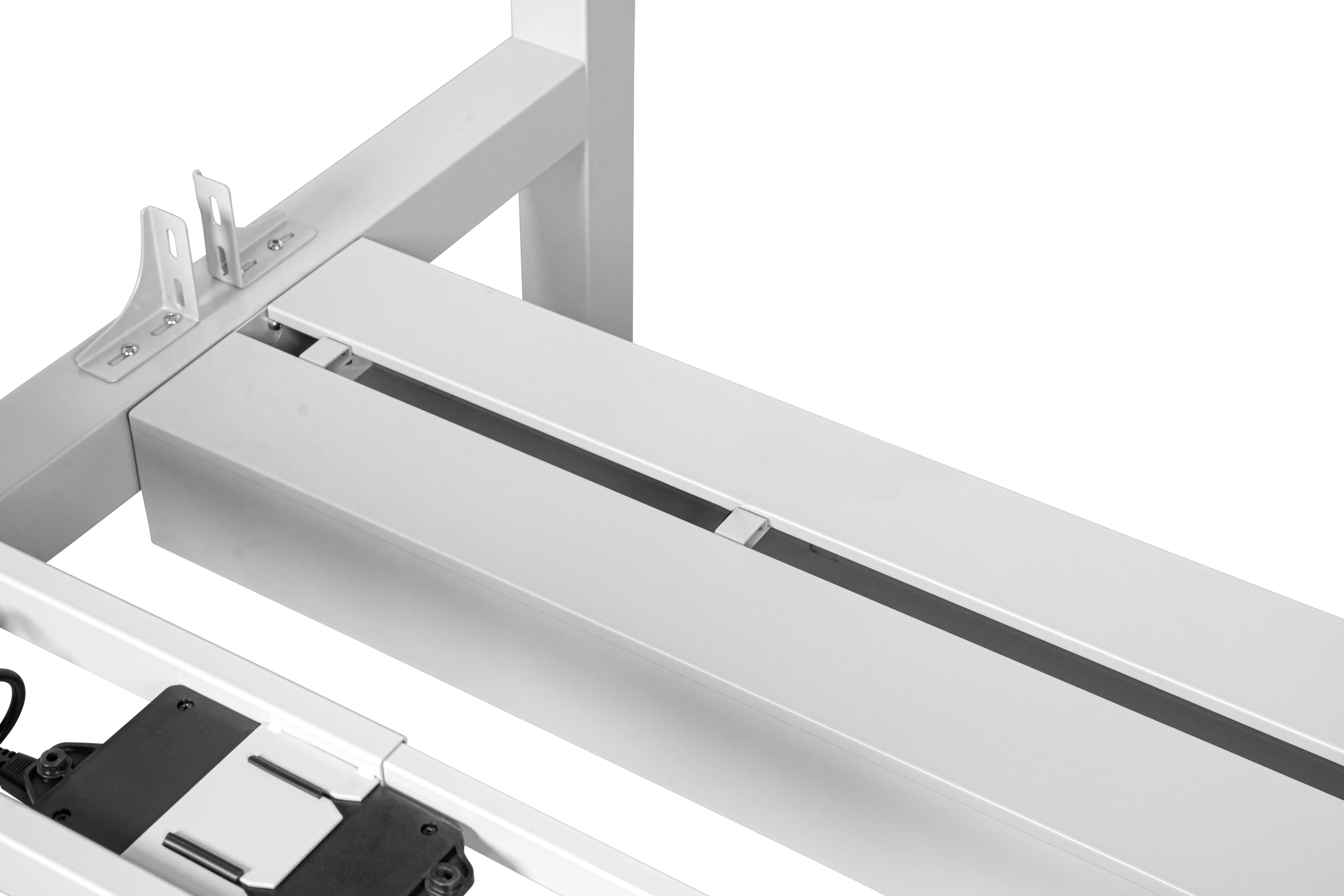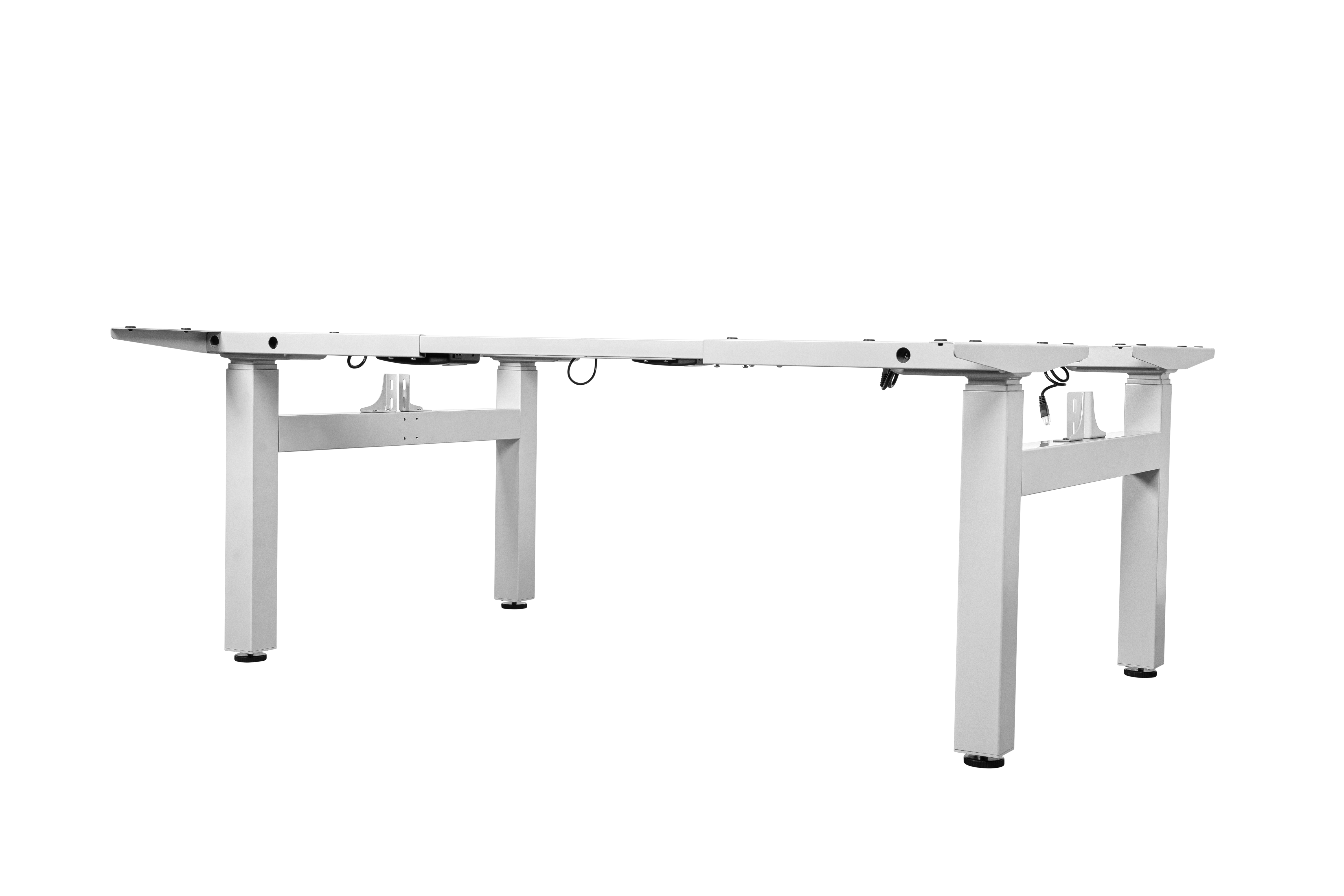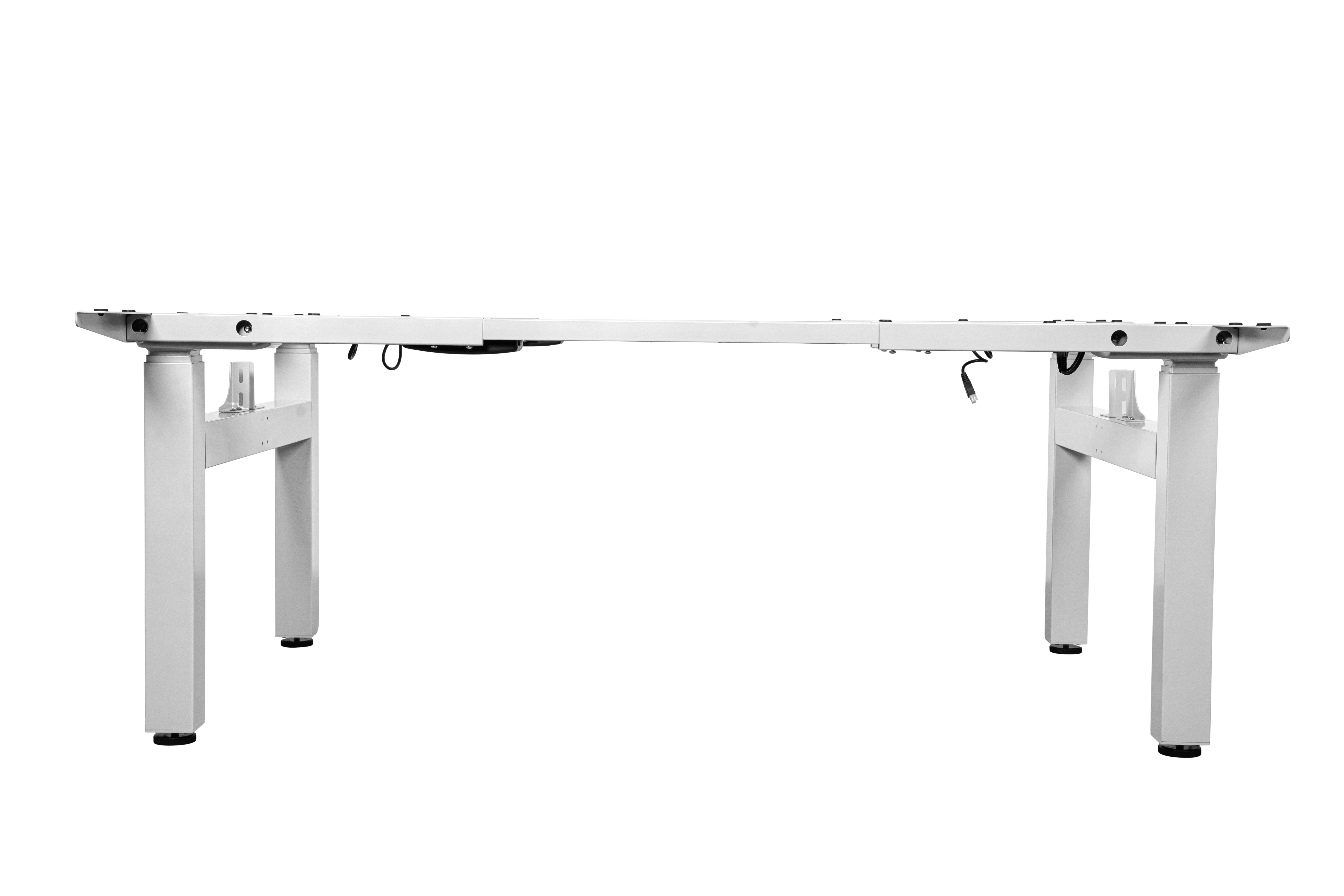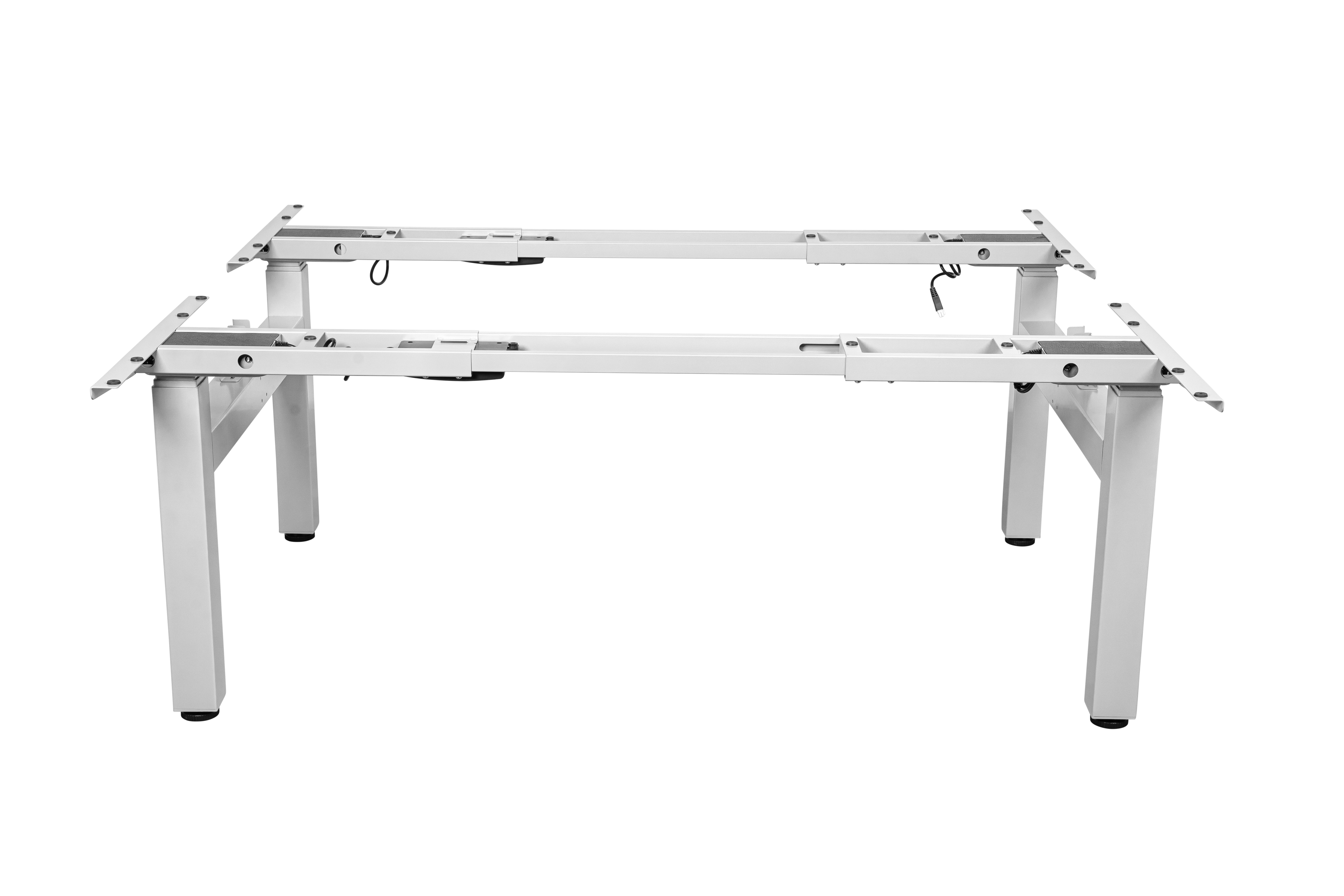 With the Ergofy DUO sit-stand frame you have 2 workplaces next to each other. The frame has a 2-motor desk base with 3 columns and a height adjustment between 630 and 1280 mm. This allows everyone with a height between 150 and 200 cm to work at their optimal working height, both standing and sitting. The frame has a whisper-quiet adjustment due to the 2 powerful motors. The 3-step leg system makes the desk very stable, even at the maximum height.