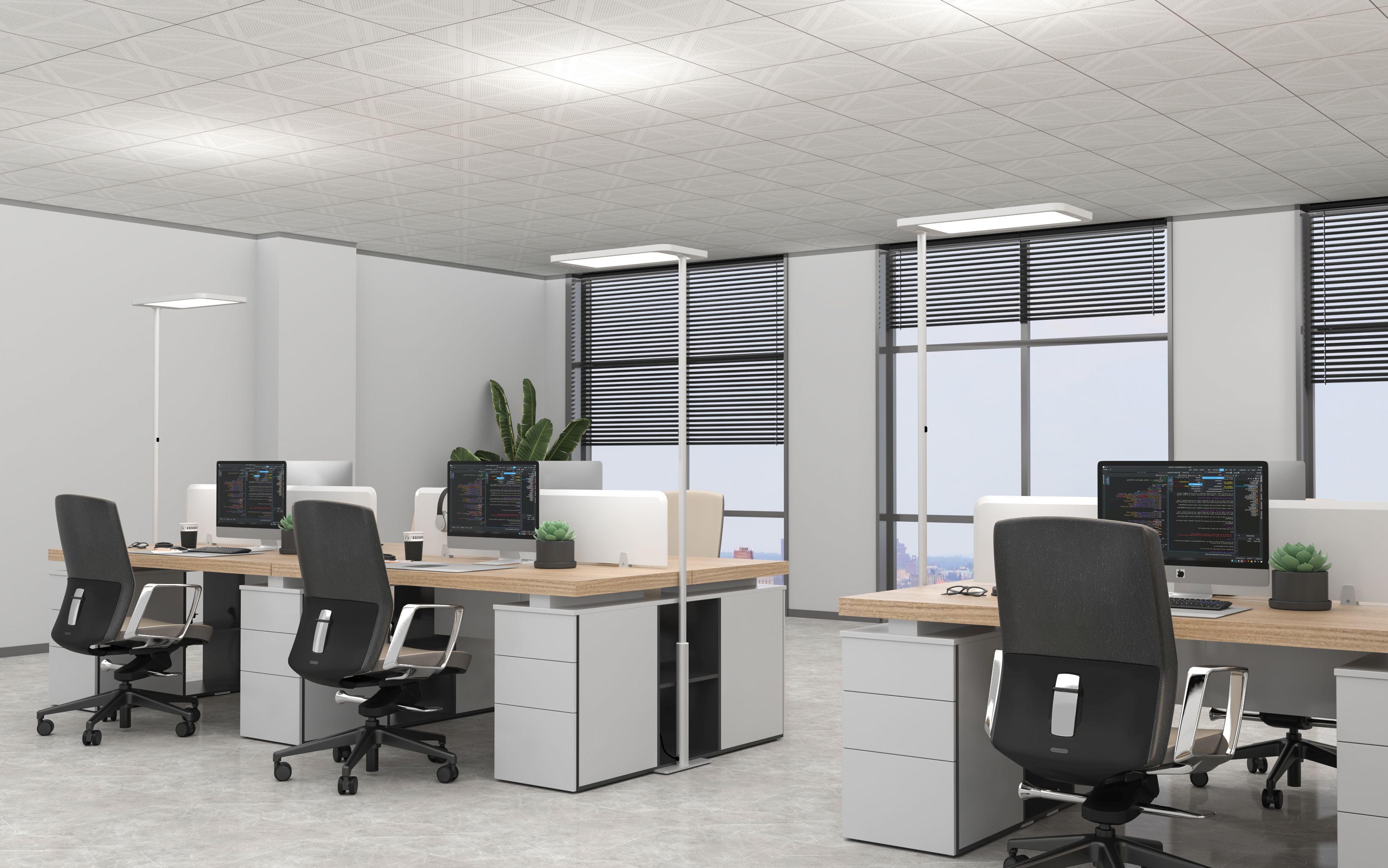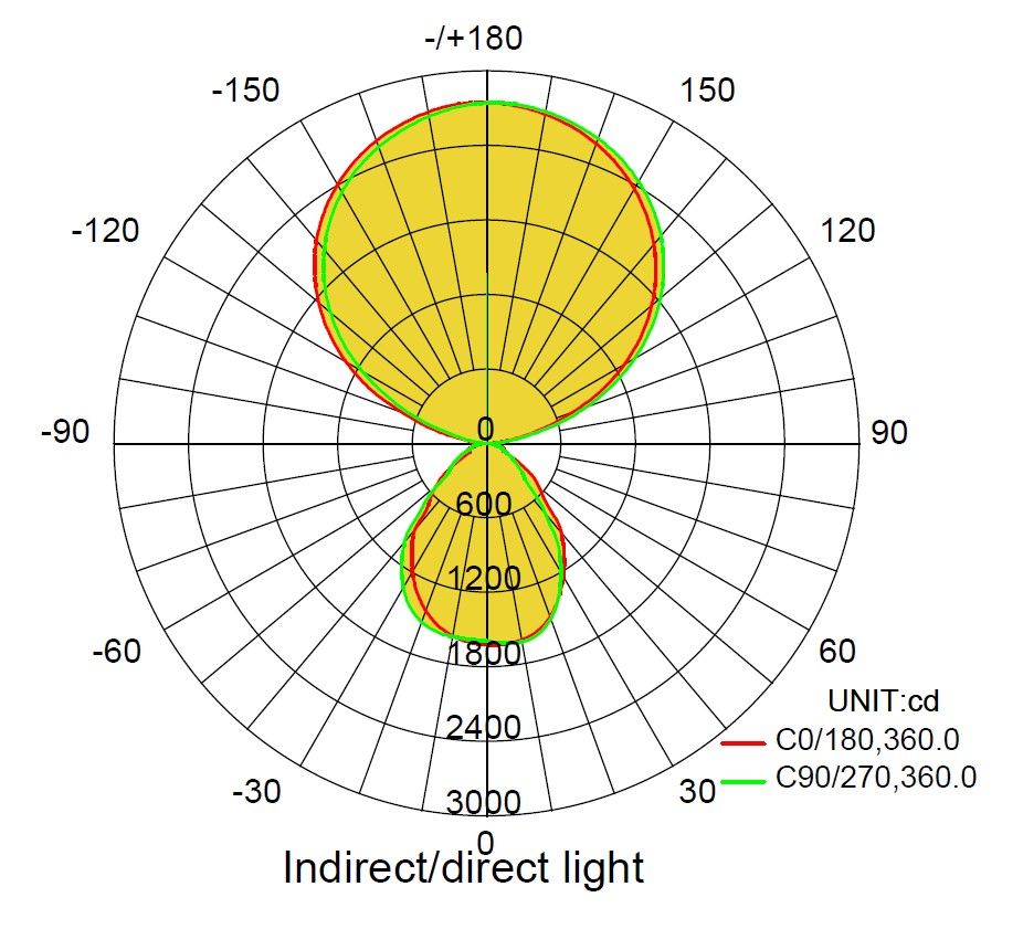 • 70% indirect light and 30% direct light, asymmetrically distributed, for optimal workplace lighting